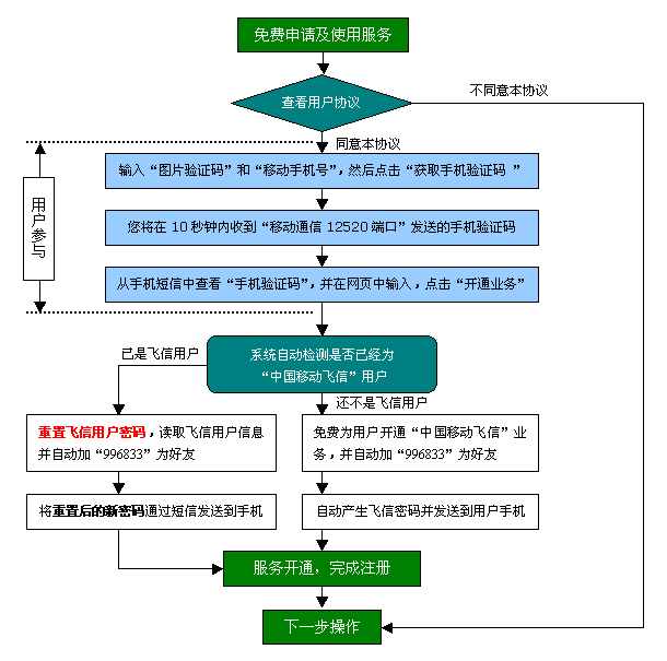 眉山人才網/洪雅人才網/彭山人才網/仁壽人才網/青神人才網/丹棱人才網/四川人才網/樂山人才網/眉山勞動力市場 “移動飛信求職招聘通”業(yè)務依托中國移動通信的“中國移動飛信”平臺,經中國移動通信提供移動飛信接口,由移動通信的第三方合作伙伴依據(jù)“飛信群”技術開發(fā)飛信短信發(fā)送接口(向用戶免費發(fā)送短信),人才服務機構提供短信數(shù)據(jù)(如招聘職位、招聘會信息等)來共同搭建。通過以上三方合作,為移動通信的手機用戶免費提供的求職招聘短信服務,方便客戶第一時間通過短信獲悉最新信息,此服務為社會化公益服務,不收取用戶任何費用。 一、服務開通流程